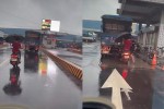 雨中玩碰碰車?他單手撐傘騎車秒悲劇 網搖頭:還好雞蛋沒破