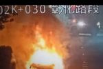 國道1號中山高速公路南下223公里彰化北斗路段,19日清晨發生火燒車事故,現場火勢猛烈。(民衆提供/孫英哲彰化傳真)