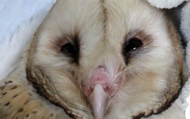 屏科大醫治受傷草鴞,傳說中的蘋果臉模樣相當可愛。(摘自屏科大保育類野生動物收容中心臉書)